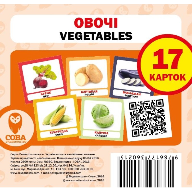 Овочі. Картки міні. Серія "Розвиток малюка" укр/англ